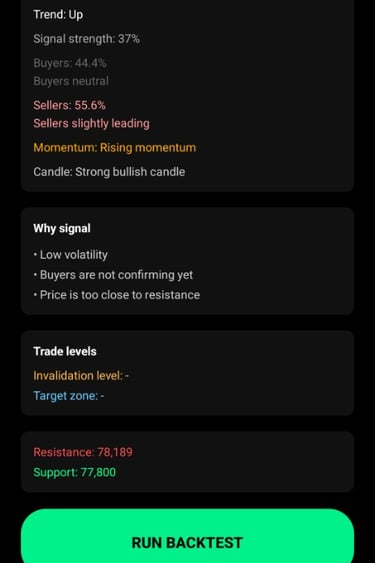 Trade Plan – shows entry, invalidation level, and target zone.