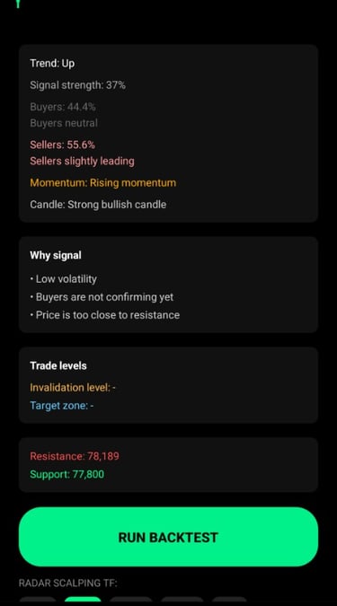 TradeScalpPRO explains why the signal was created.