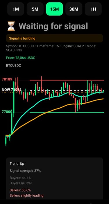 TradeScalpPRO monitors the market in real time and helps determine whether it is better to wait or prepare for a trading opportunity.